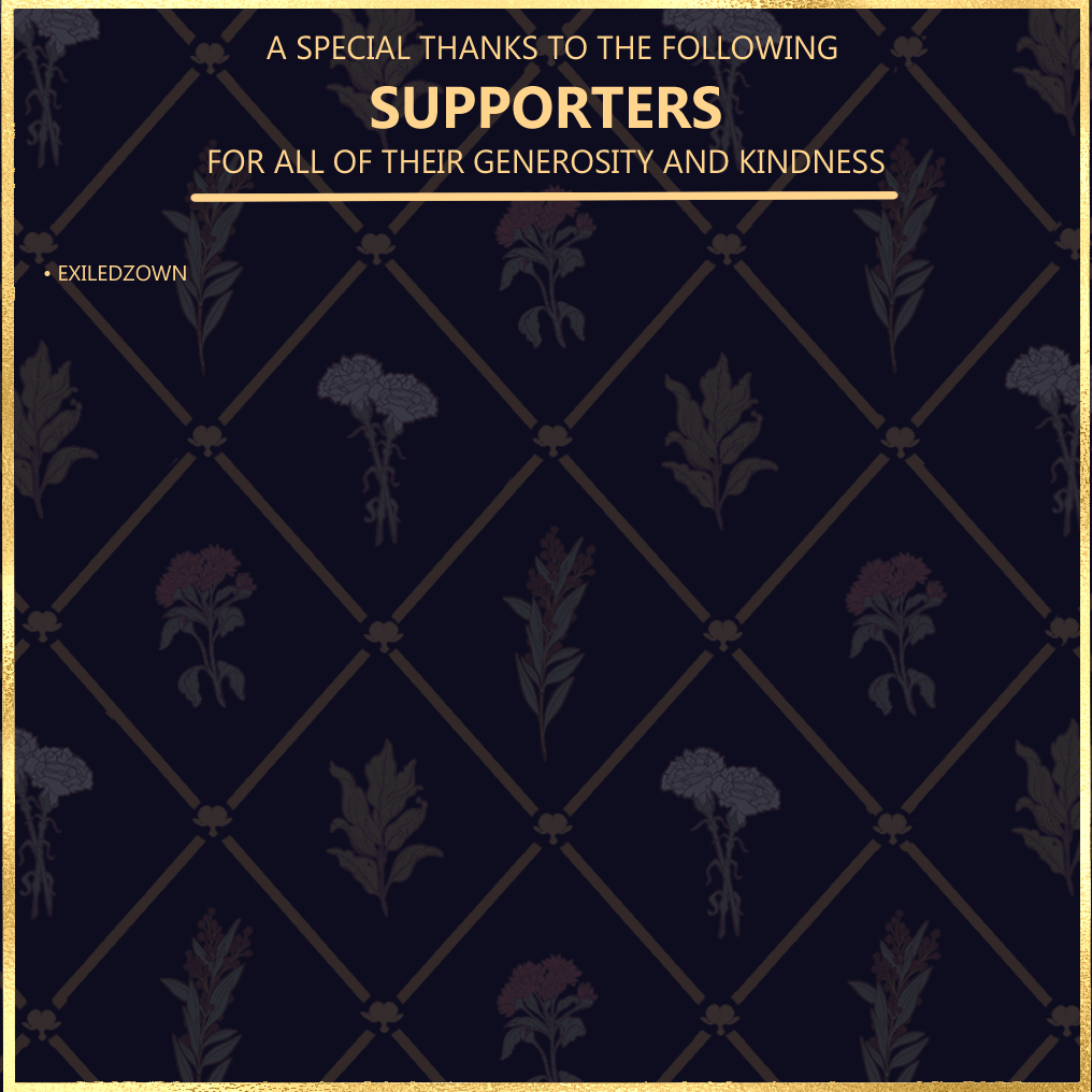 Pieces drawn for supporters as thank-yous when commissions land. Each is named for who it belongs to; more will join the wall as they are finished.